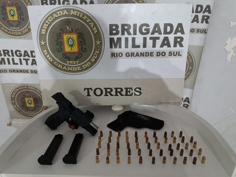 Uma guarnição da Brigada Militar, vinculada ao 2º BPAT, prendeu um homem por porte de arma na madrugada desta sexta-feira no centro de Torres, após abordagem a ocupantes de uma motocicleta e de uma GM/Tracker. A ação ocorreu próximo à Praça da Lagoa do Violão.