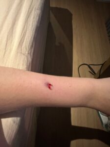 “Na hora eu não fui para o hospital porque pensei que não tinha sido nada grave. Doía, mas era tolerável. Mas agora eu penso que poderia ter sido muito pior e confesso que fico remoendo isso“, contou em entrevista. Ela ainda revelou que tiveram outros danos materiais no prédio, como janelas trincadas.