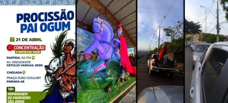 A segunda procissão em homenagem a São Jorge está marcada para o dia 21, no próximo domingo, com partida às 17h da Av. Presidente Getúlio Vargas, 6000, em Alvorada. O evento, que é uma iniciativa do “ylle ogim onira olobede”, terá sua chegada na Praça João Goulart, na parada 48, onde às 18h está prevista uma homenagem ao padroeiro São Jorge.
