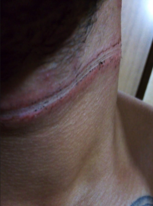 Veja a foto do pescoço do motoboy: