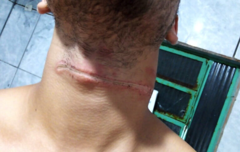 Veja a foto do pescoço do motoboy: