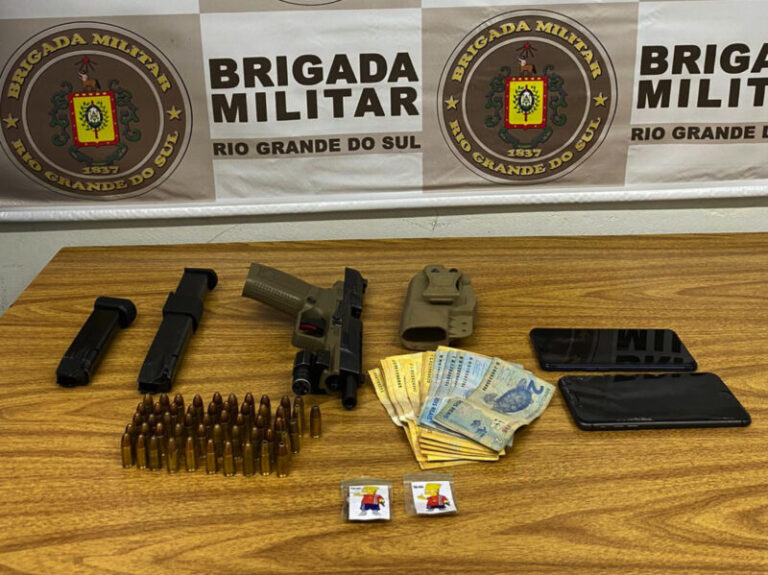 Durante uma operação de patrulhamento, os agentes abordaram os indivíduos que se encontravam a bordo de um veículo Gol. Na revista, foi encontrada uma pistola calibre 9mm personalizada equipada com mira laser, juntamente com dois carregadores, um dos quais de tamanho prolongado, além de 51 munições. Também foram apreendidas porções de maconha, celulares e uma quantia em dinheiro.