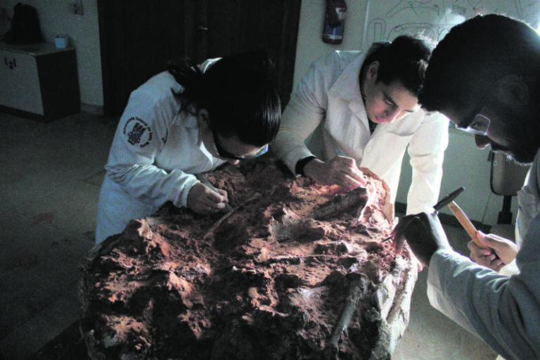 De acordo com o paleontólogo Rodrigo Temp Müller, o bloco com o fóssil foi retirado em maio e está sendo preparado por alunos no Cappa. A preparação envolve a remoção e limpeza dos ossos para permitir uma análise detalhada e comparações com outros fósseis.