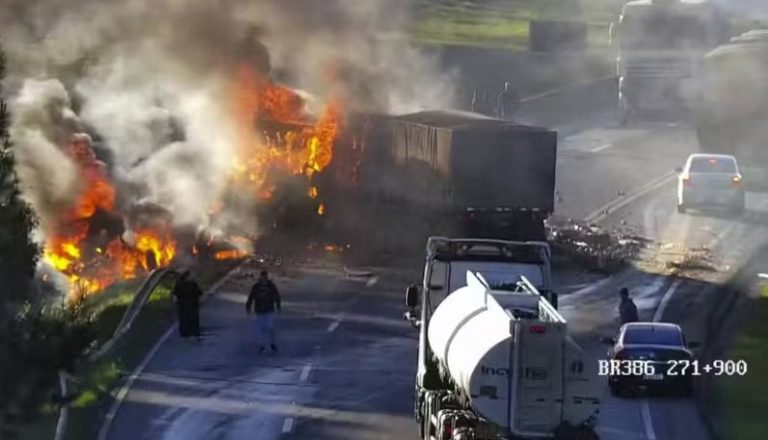 De acordo com informações preliminares, duas pessoas morreram na colisão, que envolveu dois caminhões. O trecho da rodovia permanece totalmente bloqueado, enquanto equipes de resgate da Polícia Rodoviária Federal (PRF) e do Corpo de Bombeiros atuam no atendimento às vítimas e na liberação do trânsito.