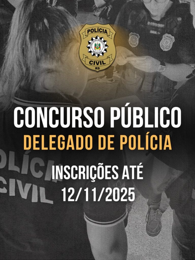 A Polícia Civil informou que as inscrições para o Concurso Público de Ingresso na Carreira de Delegado de Polícia terminam na quarta-feira (12/11). O certame prevê o provimento inicial de 30 vagas, com possibilidade de ampliação caso haja autorização governamental durante o prazo de validade do concurso.