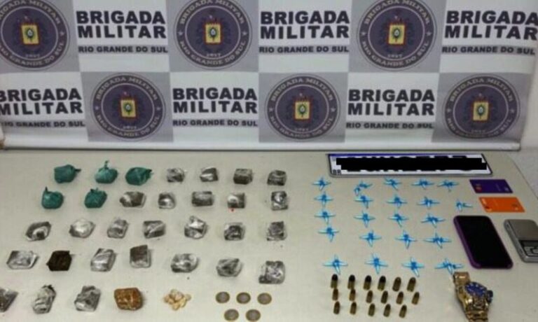 Durante a revista pessoal dos ocupantes do veículo, os agentes encontraram diversas substâncias ilícitas, incluindo cocaína, maconha, crack, munições e uma balança de precisão. Diante das evidências, os dois homens foram presos em flagrante por tráfico de drogas e receptação.