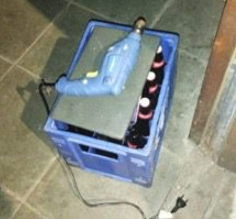 Ao chegar ao local, a guarnição encontrou o suspeito dentro do comércio, com a porta de vidro danificada. Em sua posse estavam 12 garrafas de cerveja, uma furadeira e um notebook, indicando a tentativa de furto. Os policiais realizaram a abordagem e recuperaram os itens subtraídos.