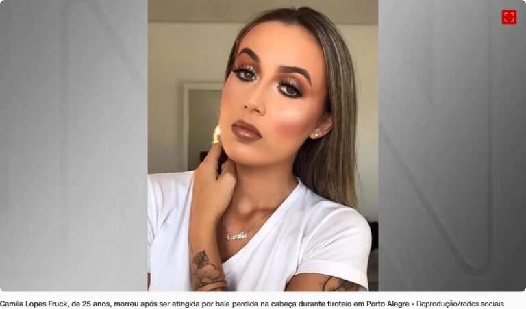 Uma mulher de 25 anos, identificada como Camila Lopes Fruck, morreu na madrugada deste sábado (16) após ser atingida na cabeça por uma bala perdida em Porto Alegre. De acordo com a polícia, no momento da ocorrência estava acontecendo um tiroteio entre dois grupos criminosos rivais.