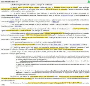 Uma vistoria posterior, no entanto, constatou que o veículo em questão, um Toyota Corolla, percorreu apenas 1.273 quilômetros no mesmo período. A diferença de 610 quilômetros teria resultado em uma indenização indevida de R$ 1.210,54 paga ao vereador. Diante disso, foi solicitado o ressarcimento do valor por não haver registro no odômetro do automóvel que comprovasse o deslocamento declarado.