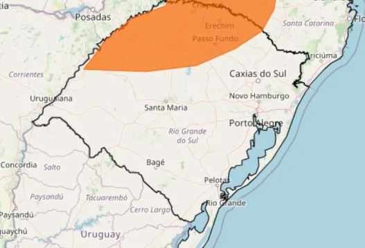 O Instituto Nacional de Meteorologia (Inmet) emitiu um alerta de temporal para as regiões Norte e Noroeste do Rio Grande do Sul a partir de sexta-feira (20).
