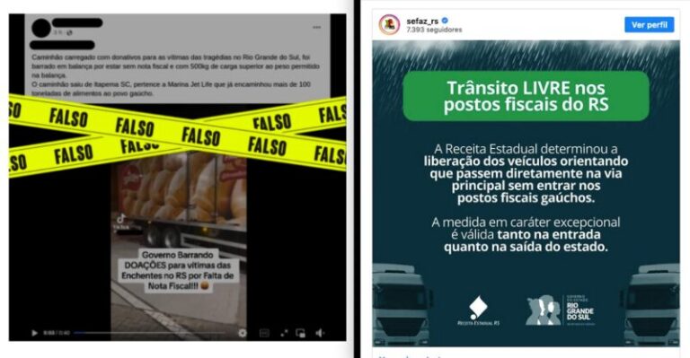 Outros dois vídeos que circulam nas redes sociais relatam que caminhões com donativos foram parados para pesagem ao entrar no Rio Grande do Sul. Na tarde desta terça-feira (7), porém, a Sefaz anunciou que havia determinado a liberação dos veículos orientando que passem diretamente na via principal sem entrar nos postos fiscais gaúchos.