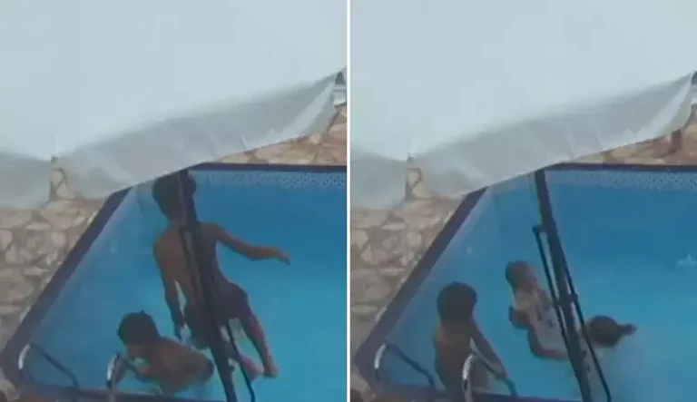 A situação aconteceu durante uma festa em família no último dia 25. Nas imagens, é possível ver o momento em que o bebê cai na água sem que os adultos percebam a situação. Cerca de 15 segundos depois da queda, o pequeno começa a se debater, se afogando com o rosto virado para baixo.