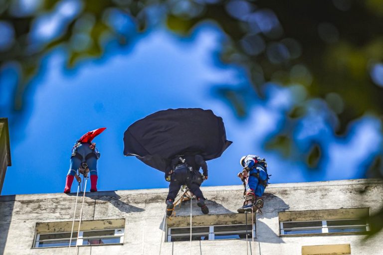 O Hospital Materno-Infantil Presidente Vargas (HMIPV), em Porto Alegre, foi palco de uma cena inesquecível nesta sexta-feira, 10 de outubro. Do alto do 14º andar, alpinistas vestidos de super-heróis desceram as paredes do prédio, surpreendendo os pequenos pacientes que observavam encantados pelas janelas.