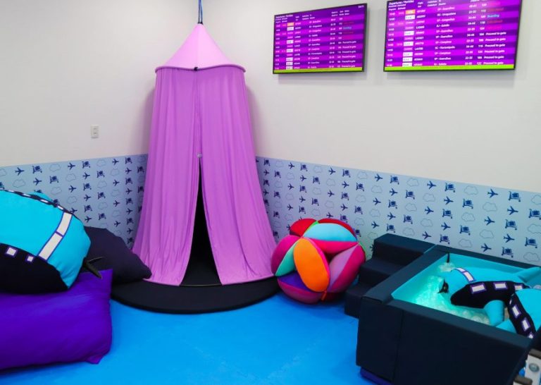 O espaço dispõe de iluminação regulável, texturas, piscina de bolinhas, pelúcias e mobiliário ergonômico, promovendo relaxamento e interação. Funciona diariamente das 5h às 22h, com acesso livre para todos os viajantes e acompanhantes.